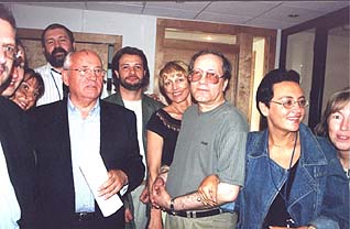 Илья Дадашидзе во время визита Михаила Горбачева в Московское бюро Радио Свобода
